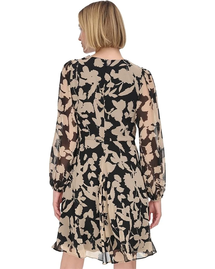 Calvin Klein Chiffon Long Sleeve Floral Rouched Aline | Dresses