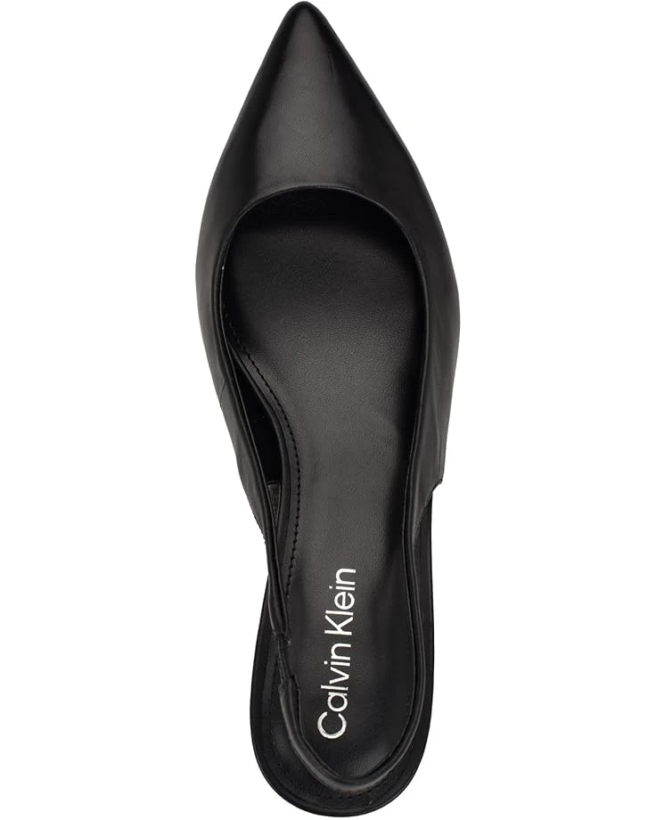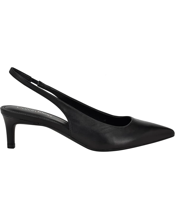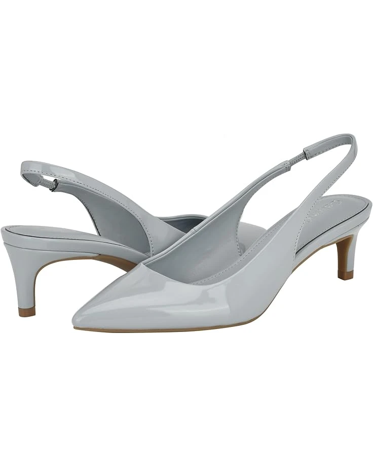 - Be ready to jealous your friends at the party by wearing the stylish and trendy Calvin Klein® Dainty heels. These kitten heels are designed with pointed toe design, elasticized slingback strap closure, and faux patent leather upper.