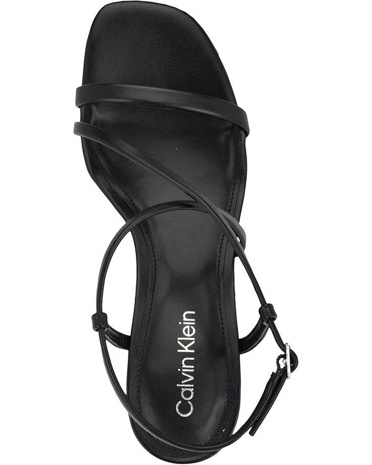 - Embrace urban elegance with a touch of comfort wearing the Calvin Klein® Ishaya Dress Sandal. This chic sandal boasts a square toe and open design, finished with a secure buckle closure. The luxurious faux leather upper pairs beautifully with the breathable, unlined interior.