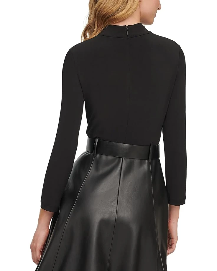 Calvin Klein Matte Jersey Combo Pu Leather Belted Aline | Dresses