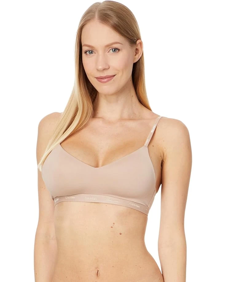 - Feel the supportive touch while staying carefree throughout the day wearing the Calvin Klein® Underwear Form To Body Lightly Lined Bralette. It has stretch technology with a second skin feel. Natural tone Calvin Klein® logo waistband offers a flexible fit with excellent shape retention. A scoop neck style and fully adjustable straps offer optimal support. This wire-free bralette has Y-back and hook-and-eye closure.