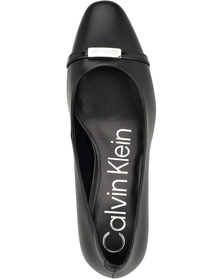 - A must-add to every fashionista’s collection, the Calvin Klein® Unesta Dress Pumps add an instant dose of elegance to your look while ensuring that you walk with comfort and confidence. Sculpted with a timeless pointy toe and elevated by a sturdy block heel, these modern slip-on pumps feature a polyurethane upper paired with a man-made lining and a lightly padded insole. The branded metal accents on the upper and the heel add the missing shine to this footwear.